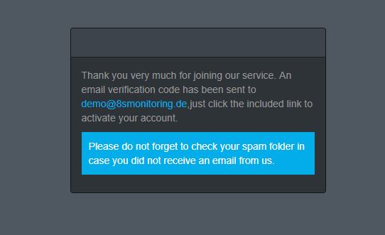 - After confirmation of your email address, you can login to your personal dashboard --> https://8smonitoring.de/login