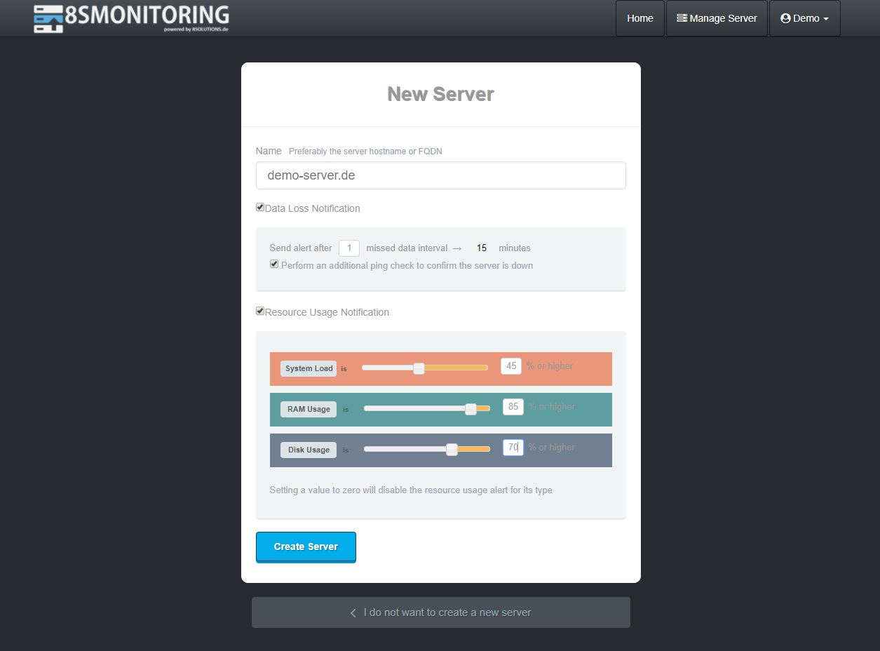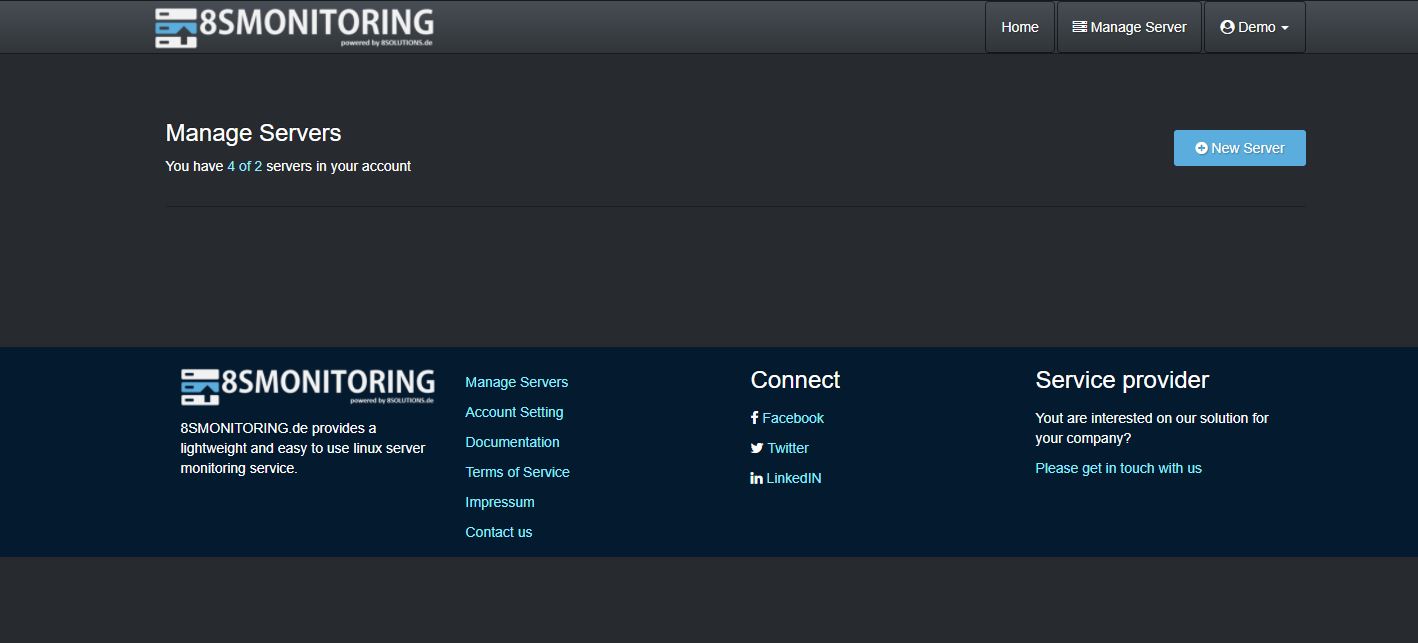 - To add your first server for monitoring, please click on the button --> “New Server”